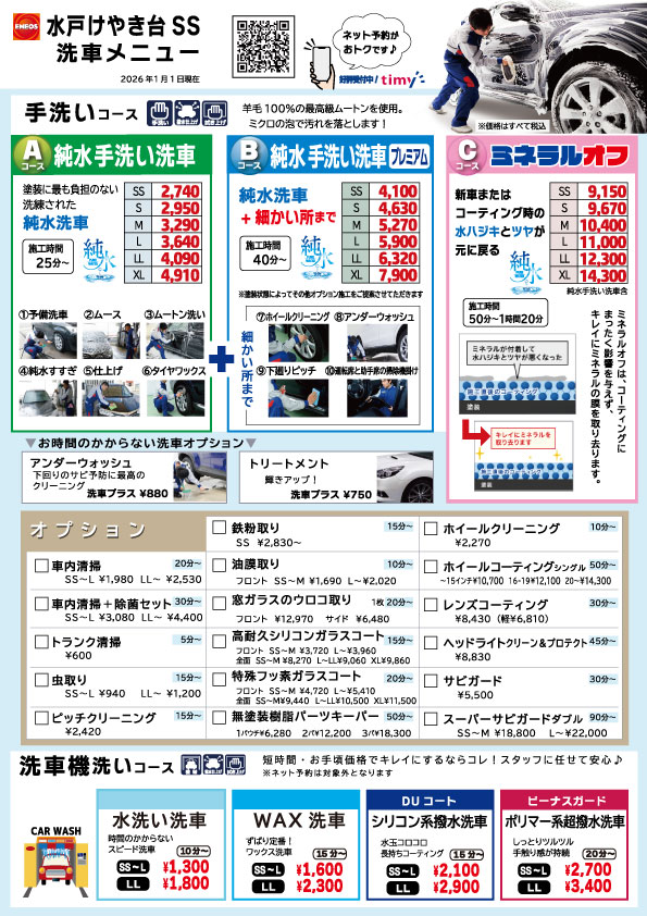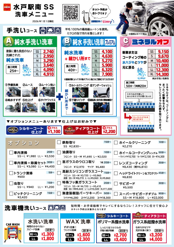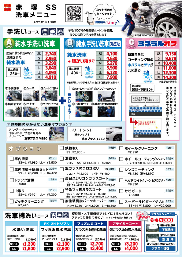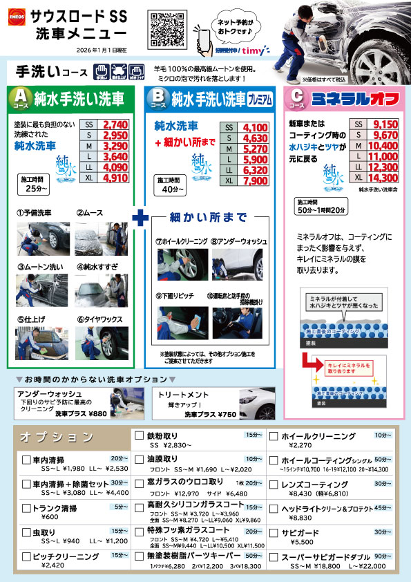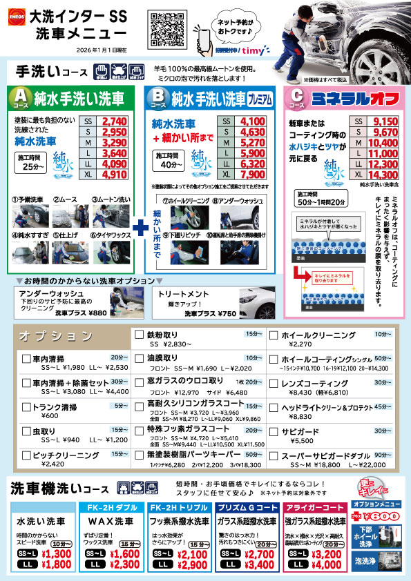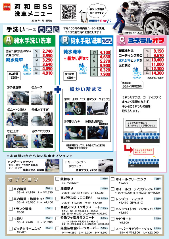 詳しくは各SSの洗車メニューでご確認いただけます。